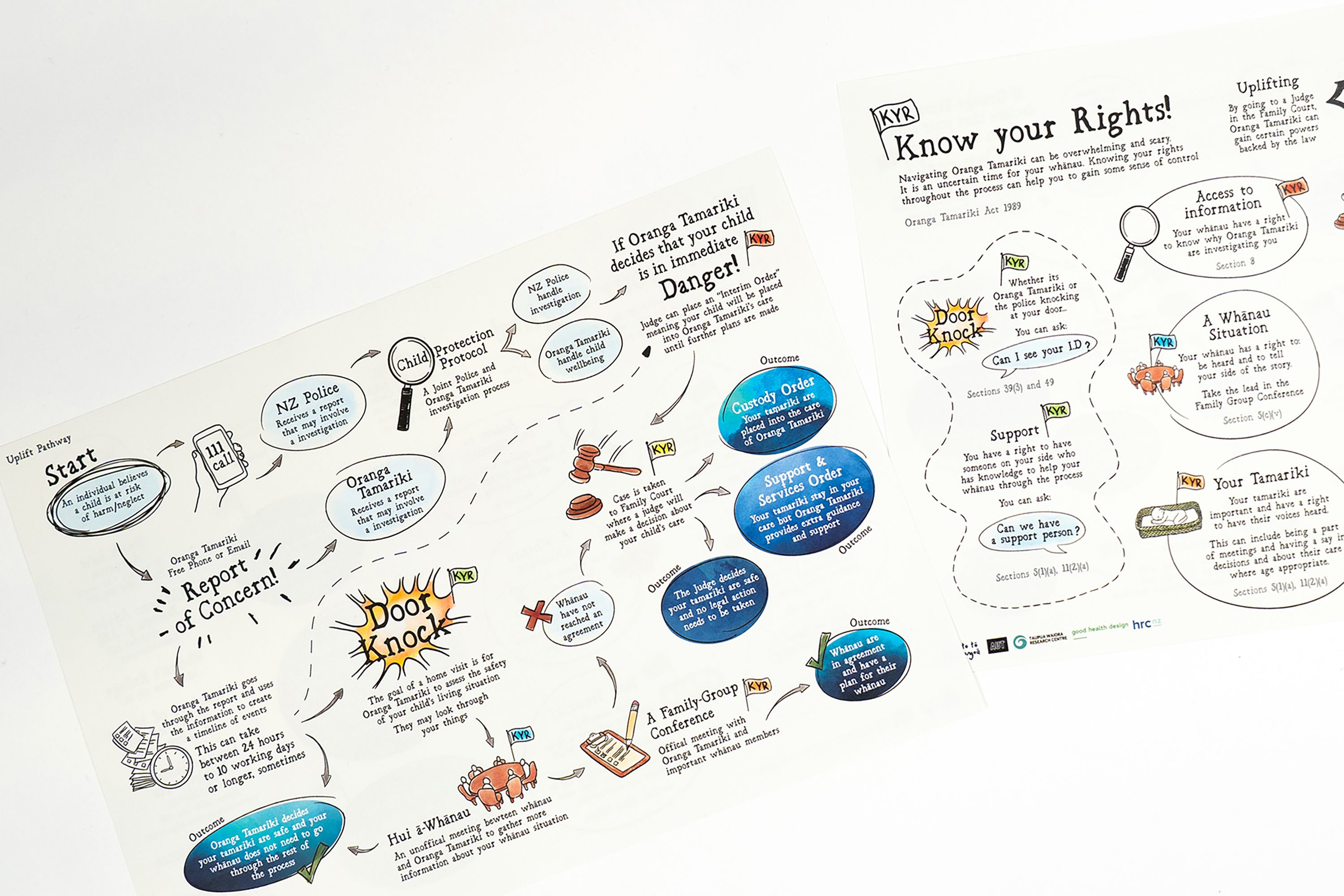 As well as the journey map, a ‘Know Your Rights’ poster was developed. The purpose of this poster is to help whānau to understand what their legal rights are, empowering and protecting whānau.